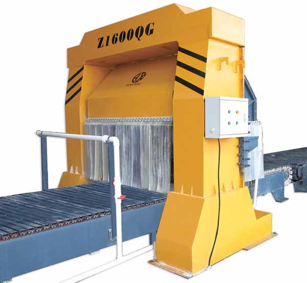 2次切割,切割後自(zì)動輸送至成品機(ji)械手,進行成品🥵碼(mǎ)垛,後送至堆場進(jìn)行自然養護